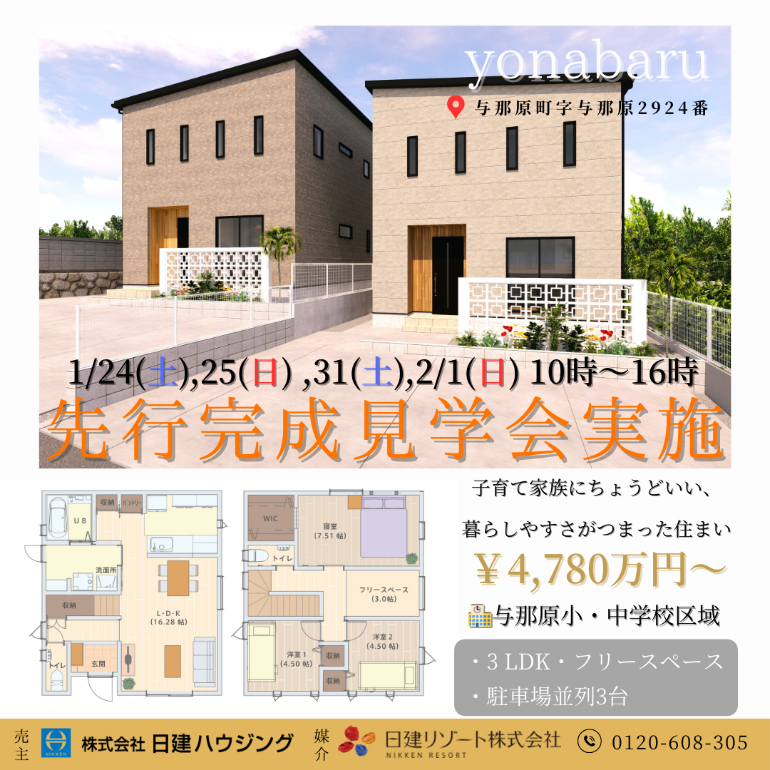 また、与那原小学校や保育園、スーパー、医療施設が徒歩圏内に揃い、子育て世代にとって安心できる住環境が整っています。